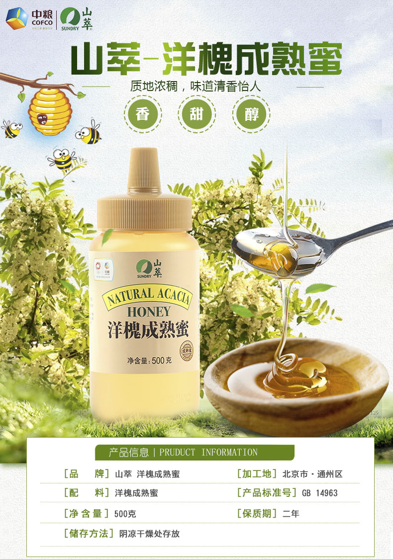 中糧集團(tuán)山萃洋槐成熟蜜500g瓶裝