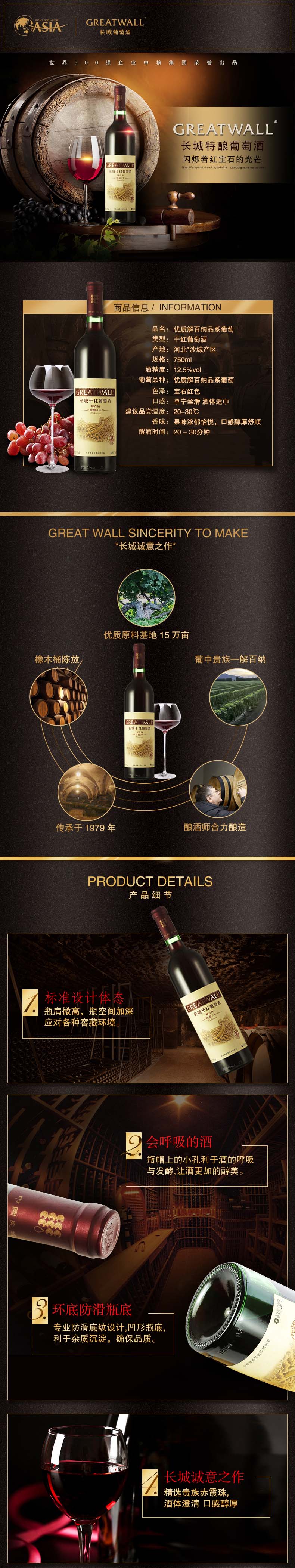 長城干紅葡萄酒解百納紅酒 特釀三年