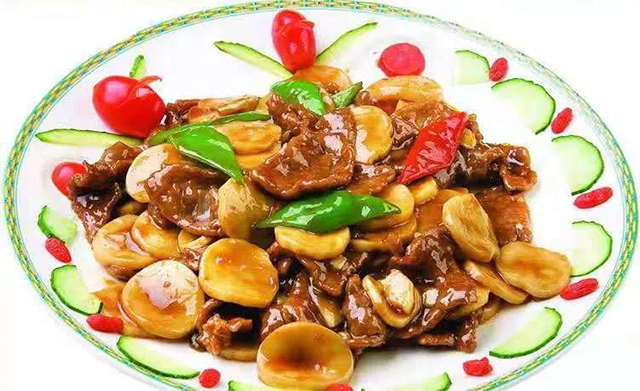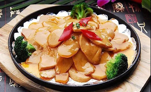 2、紅燒杏鮑菇:杏鮑菇洗凈,切去根部,切成厚片。黑胡椒粉、老抽、鹽少許腌制十幾分鐘。鍋中油熱后,放入杏鮑菇,翻炒均勻,加適量清水,水快干時加少許水淀粉,大火收汁即可。