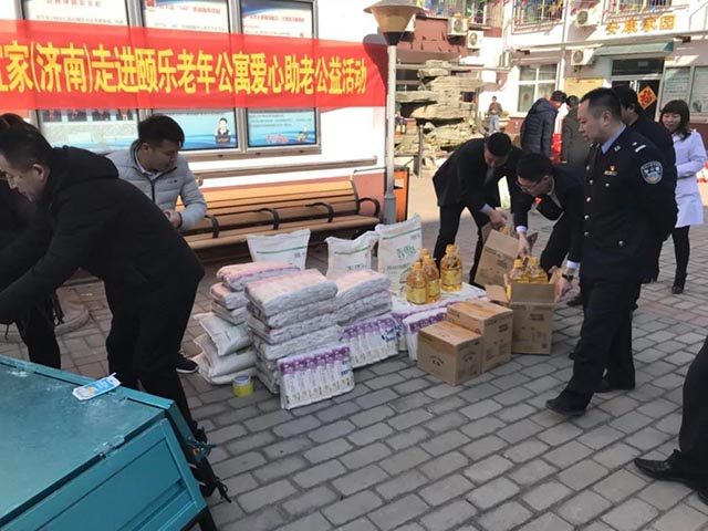 2018年2月6日下午, 中宜國糧濟(jì)南分公司總經(jīng)理助理王朋濤與濼河派出所史警官一行人來到洛河社區(qū)頤樂老年公寓進(jìn)行慰問捐贈,將孝恩的溫暖之風(fēng)帶給這兒的老人們!