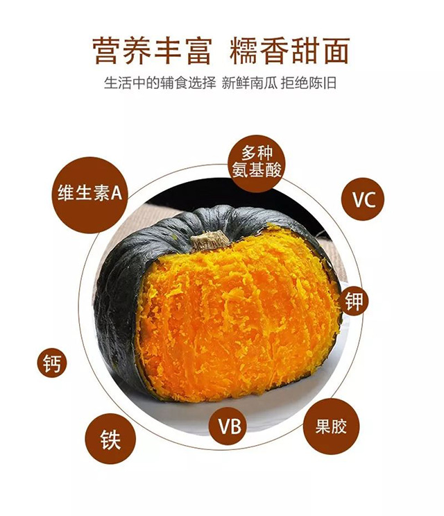 挑選南瓜的秘訣,就是“老”,南瓜越“老”,它里面所含的水分也就越少,這樣的南瓜,筋少,口感又面又沙,制作出的食物,不論是蒸、煮、炸,或者制作主食、甜品或湯粥類,味道都格外好;另外,經(jīng)過充足的日照,南瓜的甜度會(huì)變得很高,營養(yǎng)當(dāng)然也會(huì)更好。