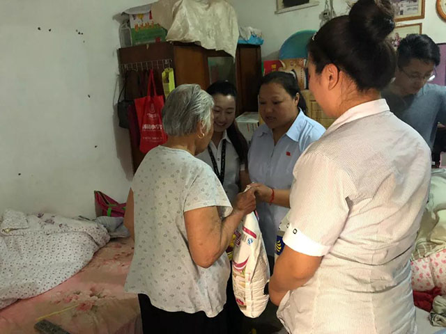 2018年6月15日下午, 中宜國糧徐州分公司總經(jīng)理吳春嶺、部門經(jīng)理褚楊楊、分部經(jīng)理董永龍、人事莊偉等一行四人來到徐州市小北門社區(qū),在社區(qū)解主任的帶領(lǐng)下來到社區(qū)走訪慰問困難老人,并為他們送上了米、面、油等。社區(qū)解主任代表居委會(huì)表示對中宜國糧的感謝,希望后續(xù)社區(qū)與中宜國糧能夠有更多的扶貧合作。吳總也對此次活動(dòng)發(fā)表講話,公司將會(huì)加大慰問的力度及廣度,也歡迎社區(qū)的居民積極參加公司的團(tuán)購活動(dòng),成為中宜國糧的會(huì)員。