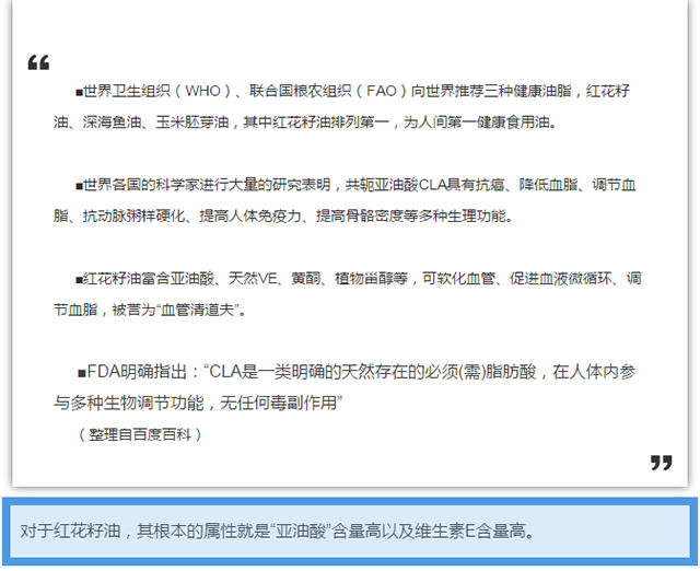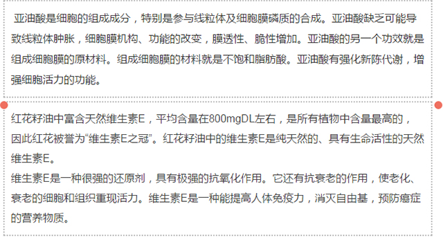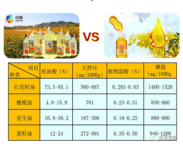紅花籽油同其它食用植物油相比,是亞油酸含量最高的植物油。