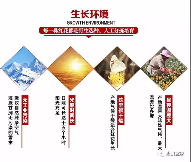 均采用新疆額敏地區(qū)100%原生的紅花基地,最適宜紅花生長的地區(qū)。