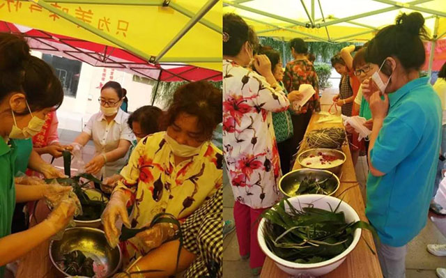 籌備期, 中宜國(guó)糧提供了包粽子的各項(xiàng)原料:大米、粽葉、棗等安全放心食材,社區(qū)購(gòu)買(mǎi)了一次性口罩、手套等,各位工作人員攜手對(duì)原材料進(jìn)行了初步的加工處理。活動(dòng)中,中山大街社區(qū)專(zhuān)門(mén)邀請(qǐng)了職業(yè)培訓(xùn)機(jī)構(gòu)的老師教大家包粽子。 中宜國(guó)糧的工作人員們、社區(qū)居民和黨員干部捋粽葉、填餡心、裹粽子,大家忙得不亦樂(lè)乎。嫻熟的技術(shù)、靈巧的雙手,一個(gè)個(gè)鮮綠的粽子一一呈現(xiàn)。