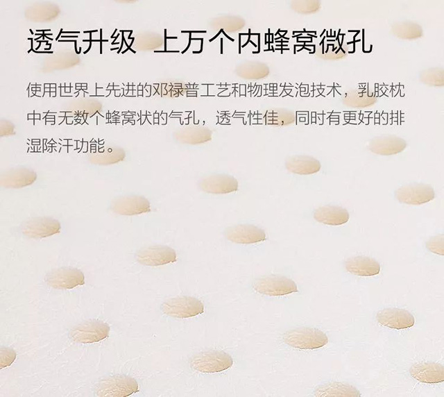 天然乳膠枕蜂窩狀結(jié)構(gòu),具有非常好的透氣性和吸濕性,快速散發(fā)人體產(chǎn)生的熱量,能根據(jù)季節(jié)的變化自動調(diào)節(jié)溫度,具有冬暖夏涼的特點。