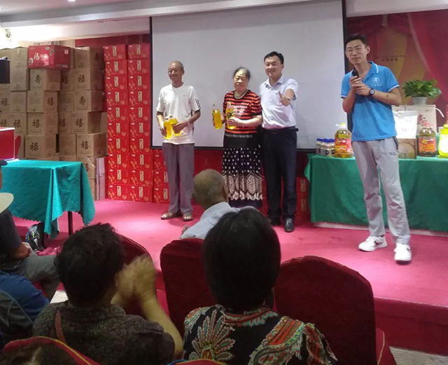 大會在隆重而莊嚴(yán)的國歌中開始,公司干部職工載歌載舞,老干部、老同志參與其中,既有愛情歌曲欣賞,又有職工小品調(diào)味,更有歌舞聯(lián)歡《我的中國心》、《一剪梅》、《唱支山歌給黨聽》、《沒有共產(chǎn)黨就沒有新中國》等,過程中恰如其分的安排了抽獎關(guān)節(jié),使整個聯(lián)歡會氣氛非凡,其樂融融,最后分公司總經(jīng)理鄭志軍同志致辭,給與會的各位老干部發(fā)放了月餅、中糧黃酒等節(jié)日的慰問品!