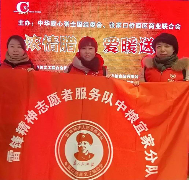 “臘八節(jié)”是一年一度的傳統(tǒng)節(jié)日,在這一天,我國(guó)大多數(shù)地區(qū)都有吃臘八粥的習(xí)俗。今年的臘八節(jié),張家口慈善義工聯(lián)合會(huì)雷鋒精神志愿者服務(wù)隊(duì)受《中華志愿者》雜志社邀請(qǐng),聯(lián)合我市愛(ài)心企業(yè)舉辦“濃情臘八,愛(ài)暖送粥”活動(dòng)。中宜國(guó)糧張家口分公司作為雷鋒志愿者隊(duì)中宜國(guó)糧分隊(duì)欣然加入其中,為奮戰(zhàn)在一線的辛勤勞動(dòng)者送去愛(ài)心臘八粥。香濃的臘八粥,暖身更暖心。