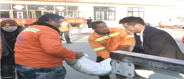一行人在中宜國糧煙臺(tái)招遠(yuǎn)分公司總經(jīng)理姜曉林的帶領(lǐng)下,將價(jià)值萬余元的大米、面粉送到環(huán)衛(wèi)工人的手中,為他們送去溫暖和祝福,感謝他們?yōu)槭腥菡麧嵶鞒龅呢暙I(xiàn),用實(shí)際行動(dòng)呼吁社會(huì)各界人士關(guān)愛環(huán)衛(wèi)工人。