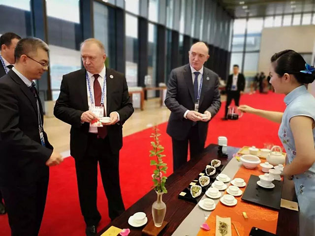會議現(xiàn)場,來自中茶的三位高級茶藝師為上合組織成員國、觀察員國領導人展現(xiàn)了中國傳統(tǒng)茶文化的魅力,通過茶文化傳播中國倡導安全、合作、發(fā)展的理念,與大會主題相契合。