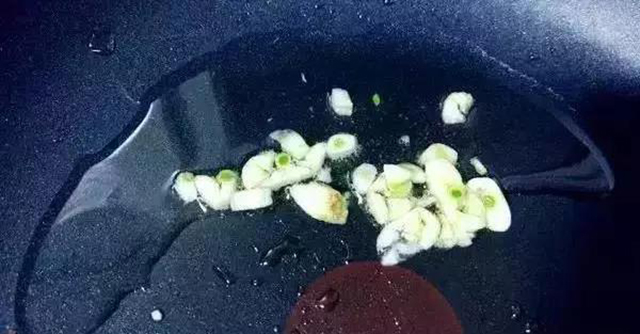 3. 燒熱鍋倒入少許橄欖油,將大蒜放入爆出香味